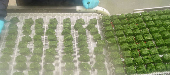 A vertical plate freezer consists of a number of plates, mounted vertically, through which a refrigerant runs. The product is simply poured into the pockets between the plates and will be frozen as blocks.